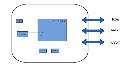 FG6222NIMB-00 | RTL8722DM, B / G / N / A, Wi-Fi + Ble5.0,1T1R, 27x30mm, UART + USB, avec blindage, IPEX, PCB 6V1 |
