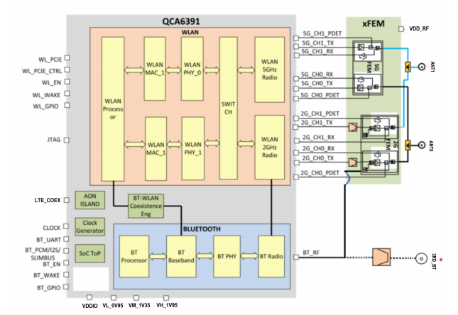 FG8291NPRX-00 | QCA6391, 19.5 * 21.5mm, 2x2, 802.11A / B / G / N / AC / AX BT5.1 DBS 2G & 5G, double antenne |